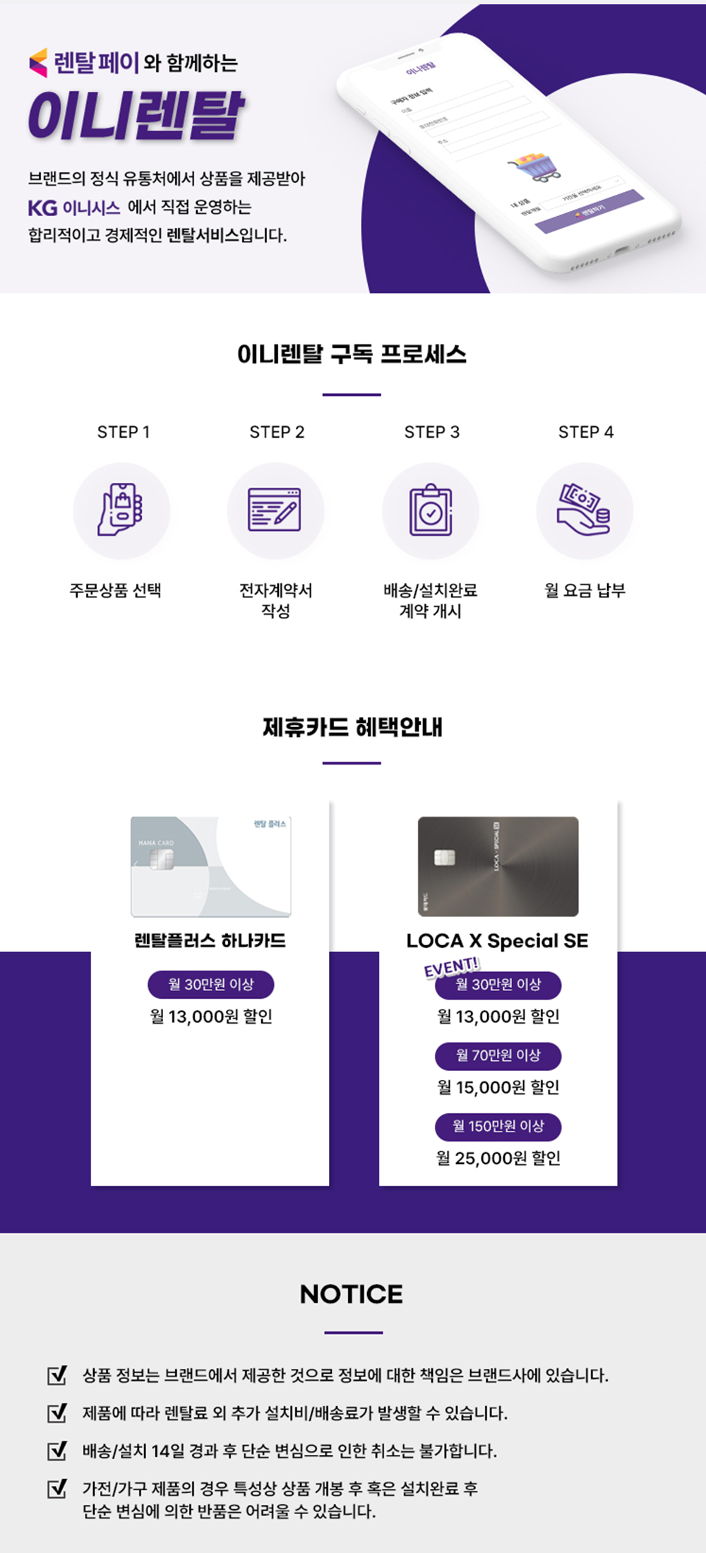 홈페이지 상담 및 렌탈 구매 필수 이름, 휴대폰번호, 주소 (우편번호, 상세주소) 렌탈 신청에 따른 고객 상담 및 렌탈구매 3개월