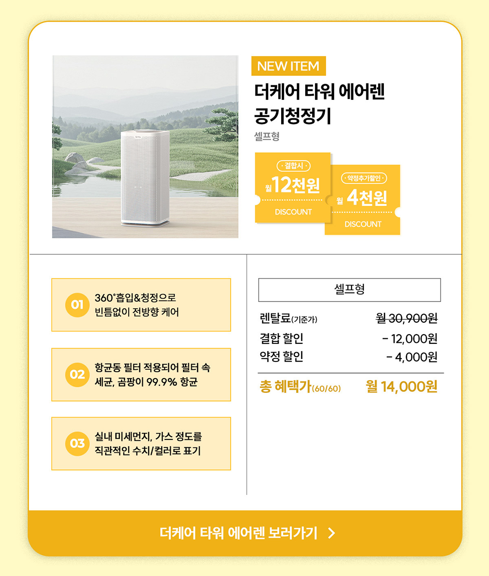 홈페이지 상담 및 렌탈 구매 필수 이름, 휴대폰번호, 주소 (우편번호, 상세주소) 렌탈 신청에 따른 고객 상담 및 렌탈구매 3개월