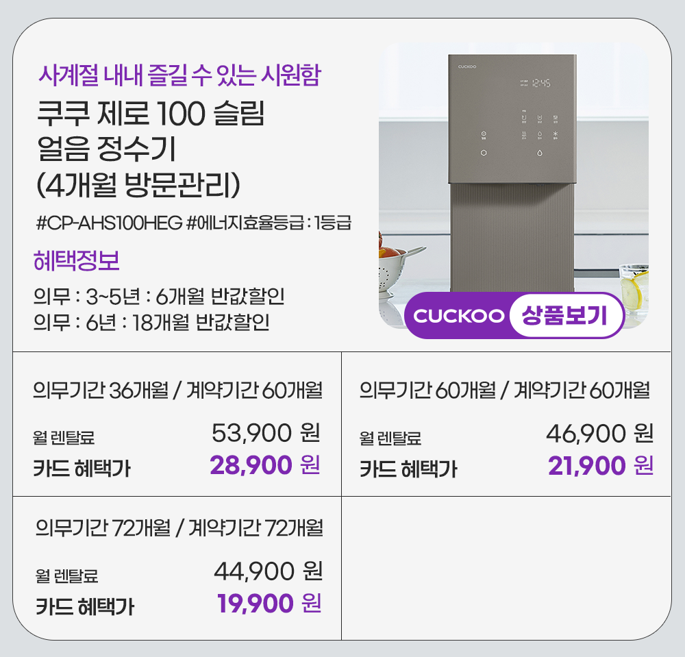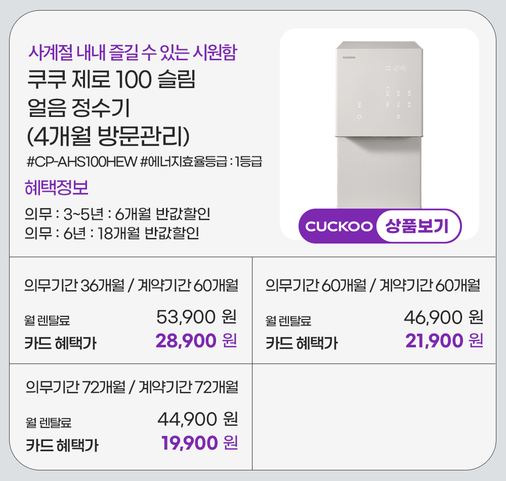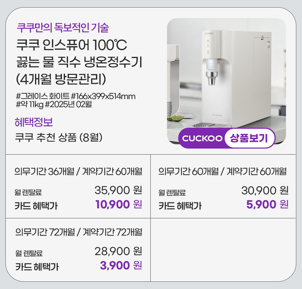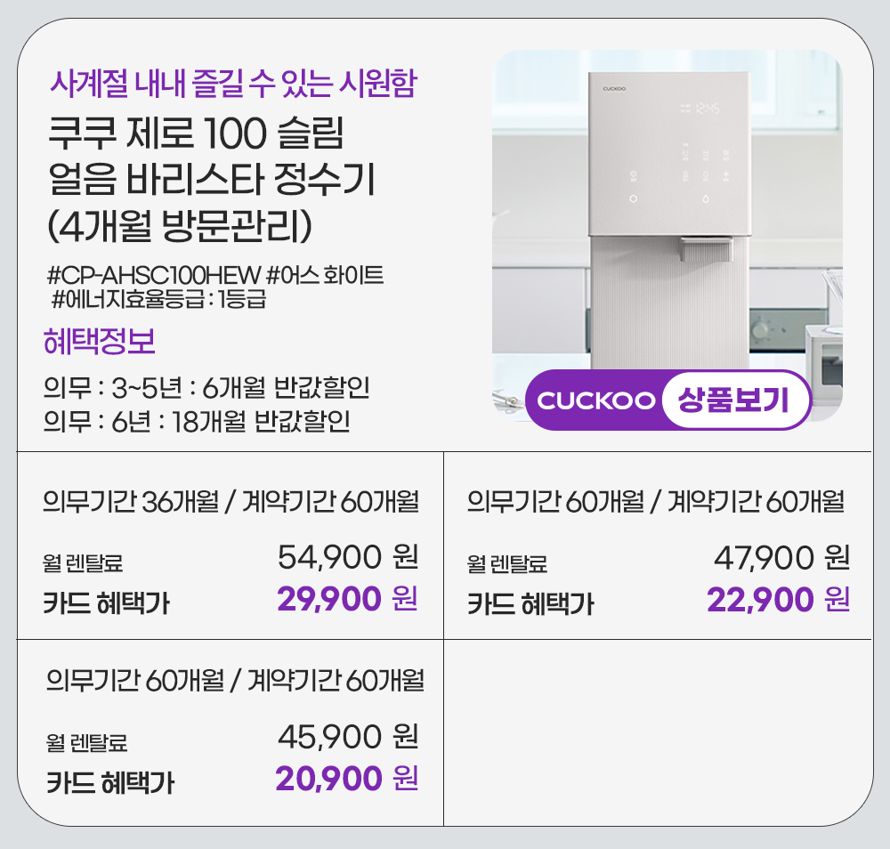 홈페이지 상담 및 렌탈 구매 필수 이름, 휴대폰번호, 주소 (우편번호, 상세주소) 렌탈 신청에 따른 고객 상담 및 렌탈구매 3개월