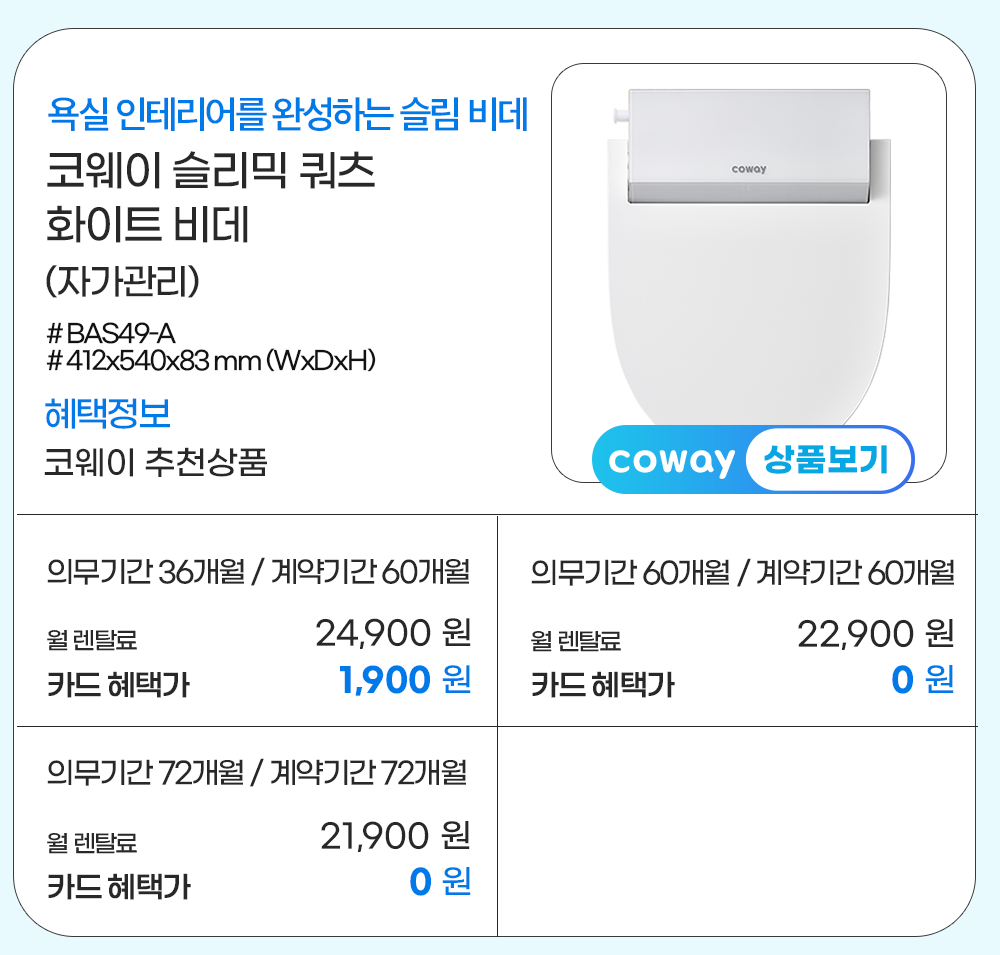 홈페이지 상담 및 렌탈 구매 필수 이름, 휴대폰번호, 주소 (우편번호, 상세주소) 렌탈 신청에 따른 고객 상담 및 렌탈구매 3개월